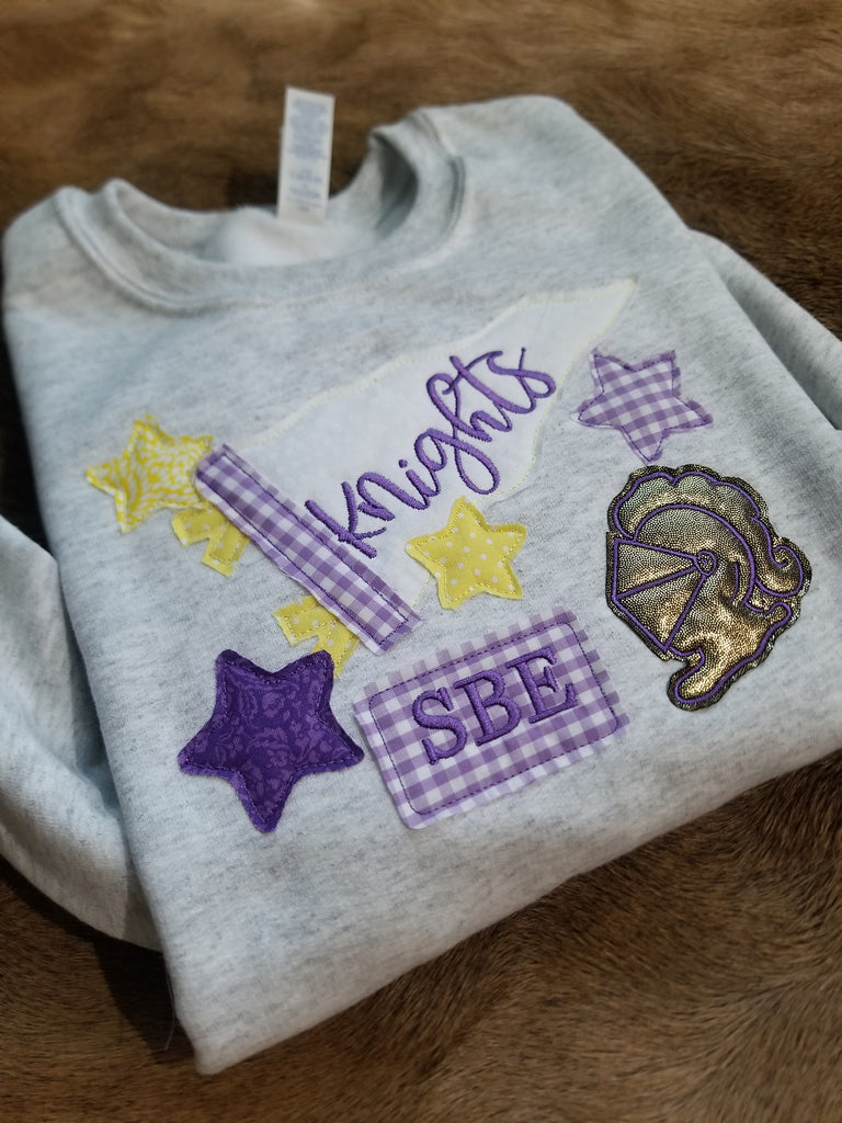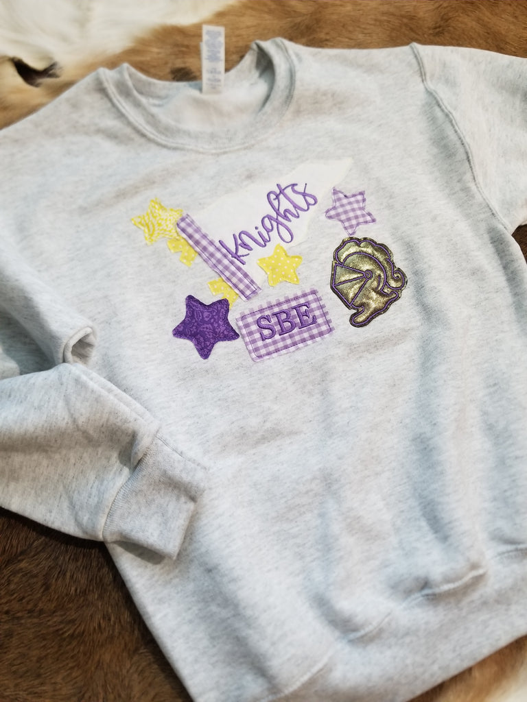 Sweatshirts are machine embroidered and fabric is hand cut. No two sweatshirts will be exactly the same.