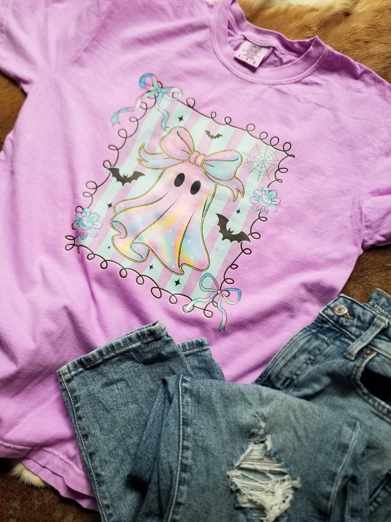 These shirts are direct to film printed with a high quality transfer. Comfort Colors Neon Purple.