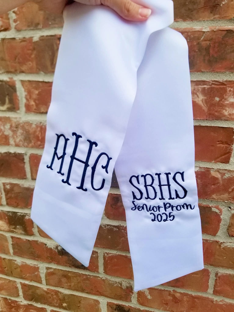 Wreath Sashes are a need on your prom or homecoming checklist. Choose your monogram style and thread color to match the dress. If you would like something extra ex. SBHS Prom/homecoming please add that in the initial section.